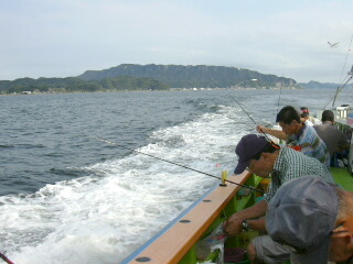 お隣のお客さんが剣崎沖に拘っていらしたようで、剣崎沖の方が釣れるんじゃないかと言っていましたが、船長は「剣崎じゃ潮が速すぎるから25号じゃ真横に飛んでって釣りにならないよ」とおっしゃっていました。