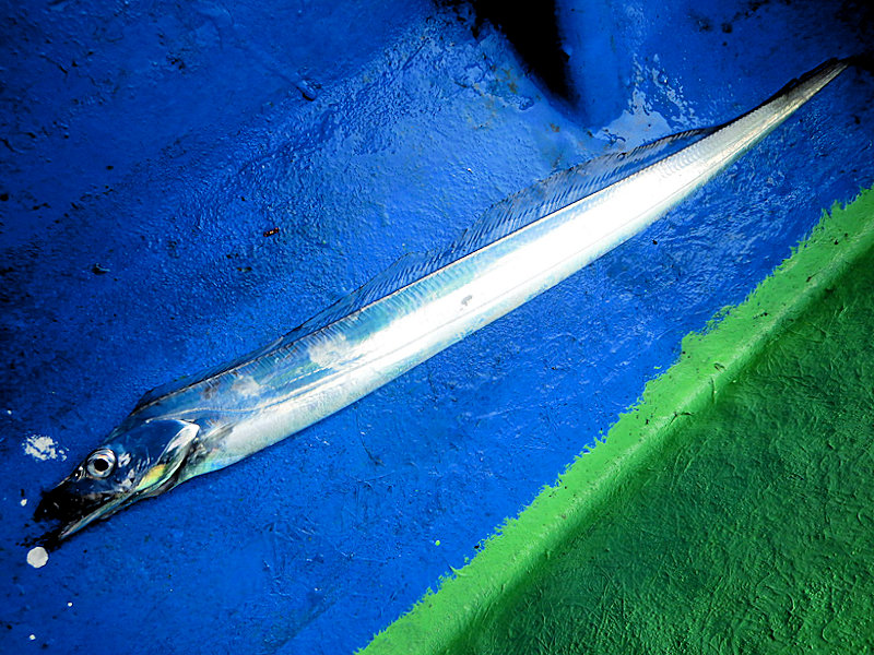 アカムツ1尾(33cm)、タチウオ1本(78cm)、ユメカサゴ1尾(23cm)、以上。左舷トモ氏が3尾でトップ、私と左舷ミヨシ氏が1尾づつで船中5尾。ゼロが2名様とかなりキビシイ一日となりました。