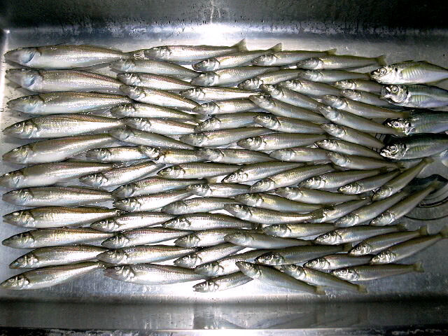 本日の釣果、シロギス 12〜22cm 81尾(竿頭)。その他アジ4尾。