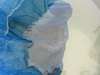 二流し目、右手の人差し指の小突きが何気に押さえ込まれ、これは根掛かりかタコかどっちかだぞ!タコなら早アワセは禁物、擬似ガニではなく本物のカニを使っているので、十分抱かせる間を取ってから、一手二手大きく合わせると微妙な重みはある。コレ何か付いてるよ。上げるとナント可愛い、後の計量で180gの小ダコだった。とりあえず船中初物ゲットでOK牧場。タコは足先が出る程度の隙間があれば簡単に脱走してしまうので、網に入れて口を紐でしっかり縛ってからバケツで生かしておく。今日は長潮で朝一が干潮、その後、実釣時間一杯上げる予報。しばらくすると逗子・葉山方面から入る潮が効き始め、船はトモ流し。タコ釣りも潮先有利なのか、お隣の右舷トモのお客さんがひとり好調。1Kg級含みでポンポンと3杯もゲット。他にバラシもあるようなので、回数的にはもっと乗せているのだろう。他、左舷トモでも水面バラシがあった模様。こちらはたまに合わせても殆どがワカメで、あれ以降なかなか乗りが来ない。型が出ないとなると移動は早く、腰越から稲村ヶ崎の間をモグラ叩きで水深は15mから深いところで25m程度。かなり厳しい根の中も攻めるので、ガッチリ根掛かりしてテンヤごと失うお客さんも発生。ちなみにテンヤを船で購入する場合は別途¥600を支払い、餌のワタリガニはお代わり自由である。海底でフグなどに攻撃されていると思われ、カニの足がだんだん取れ、胴体が割れてくると、その先バラバラにされるまでは呆気なく、こうなったら新品に交換するしかない。