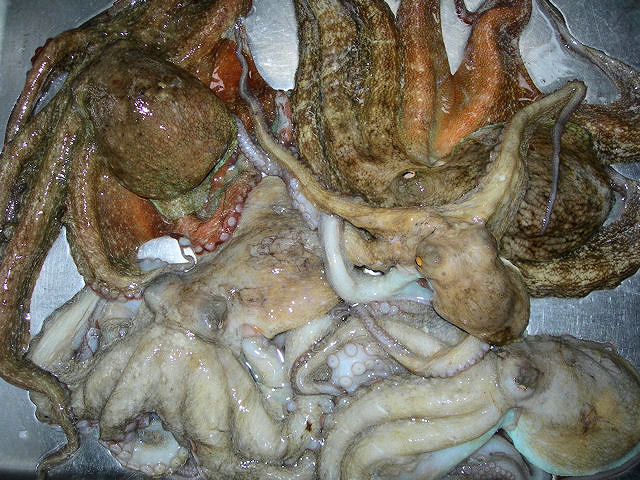 本日の釣果、マダコ 5杯(180g、320g、450g、480g、580g)。何故かこの順番で釣れました。
