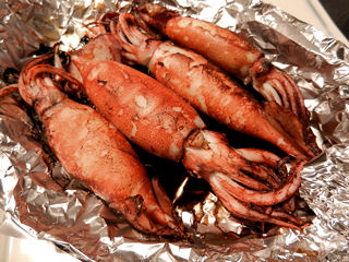 まずは王道、まるちゃんのお刺身。マルイカは当日でも硬過ぎること無く、ほのかな甘味を伴って、やっぱりウンマイ!そして、小麦ちゃんの丸焼き。釣れた瞬間からコレをやりたくて、久し振りにかぶり付きました。このあと数日はイカ三昧!